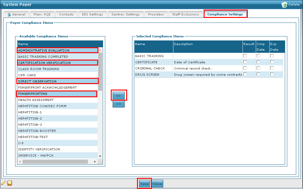 | 4. | Click on the compliance item to be added. |
