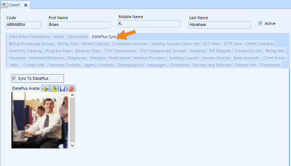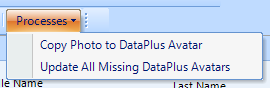 You can copy the photo from the Main tab to use as the Avatar, if desired. To do so, from the Processes menu select either Copy Photo DataPlus Avatar (for selected client) or Update All Missing DataPlus Avatars (for all clients).