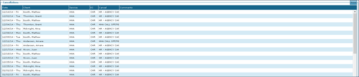 Service | Displays the service received by the client associated with the cancelled visit. |