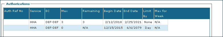 Authorizations contains the information associated with the coverage assigned to the client by the primary payer.