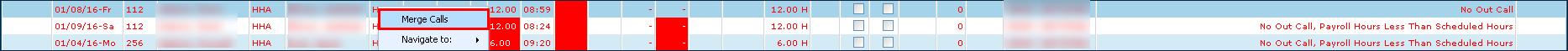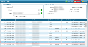 If no call was made, confirm with the field staff when the visit occurred and manually enter the call time on the Schedule Detail screen. If there is a call to merge, use the following: