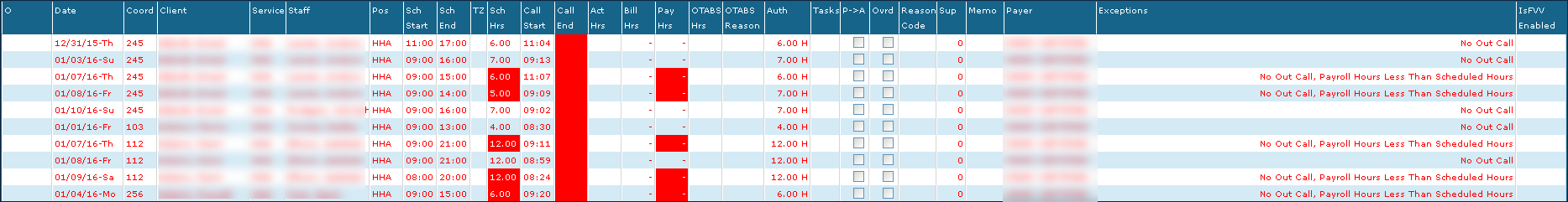 A ‘No Call Out’ exception results when a call in was made but a call out was not received as scheduled.