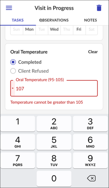 Some tasks require the user to enter a value in the field (for example: weight, blood pressure, or car fare).