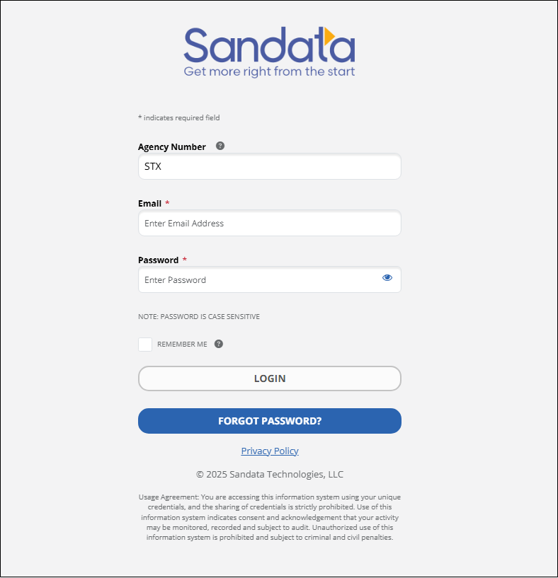 Sandata Aggregator allows users to request a temporary password if necessary. After logging in using the temporary password, users are prompted to create a new permanent password. Passwords can only be reset once every 24 hours.