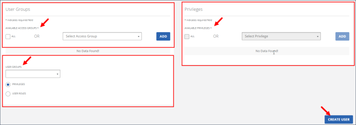 6. Select a USER GROUP (ACCESS GROUP) and then PRIVILEGES or USER ROLES.