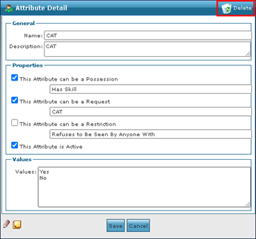 Sandata Technologies Product Help Sandata Agency Management System Setup Removing an Attribute from the System To remove an invalid or out of date attribute from the System: 1. Navigate to the System Attributes screen. Main Menu > Admin > System Settings > Attributes 2. Double click on the attribute to be removed. 3. Click Delete. 4. Click Ok. Zendesk Designer.5.log-1117815581.zip10 KB Comments 0 comments Please sign in to leave a comment.
