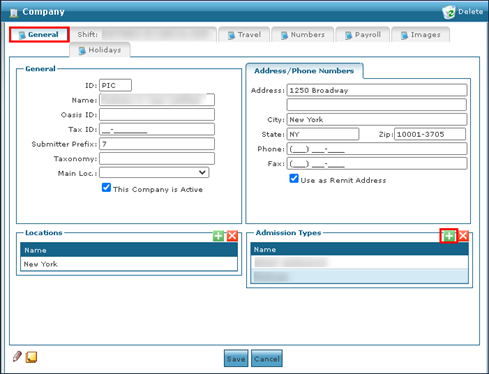 Sandata Technologies Product Help Sandata Agency Management System Setup Adding an Admission Type to a Company To add a new admission type: 1. Navigate to the General tab on the Companies window. Main Menu > Admin > System Setup > Companies > General 2. Click Add New Admission Type. 3. Select the new admission type. 4. Click Save. Zendesk Designer.5.log-1117815581.zip10 KB Comments 0 comments Please sign in to leave a comment.