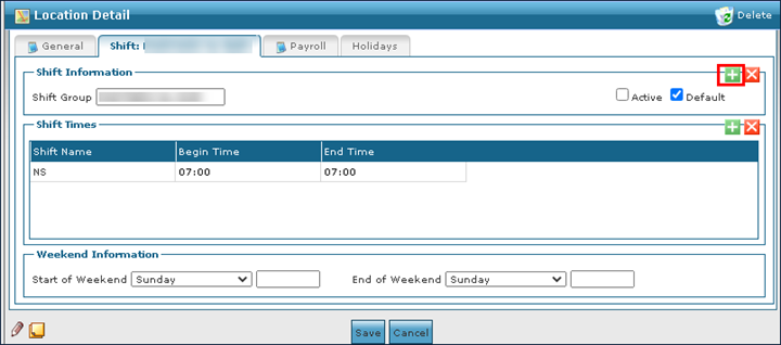Sandata Technologies Product Help Sandata Agency Management System Setup Adding a New Shift Group to a Location To add a new shift group to a location: 1. Navigate to the Shift tab on the Location Detail window. Main Menu > Admin > System Setup > Locations > Location 2. Click Add New Shift Group. 3. Enter the name of the new shift. 4. Click Ok. Zendesk Designer.5.log-1117815581.zip10 KB Comments 0 comments Please sign in to leave a comment.