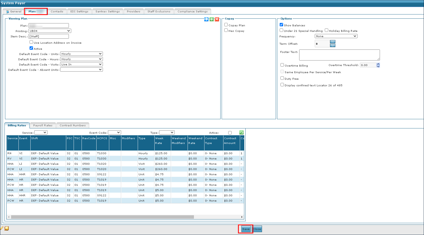 3. Click the associated Rate Plan tab. 4. Select the appropriate corrections or changes to the rates and settings. 5. Click Save. |