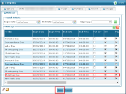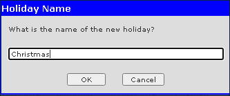 4. Click Ok. 5. Use the fields to enter the holiday information. 6. Click Save. |