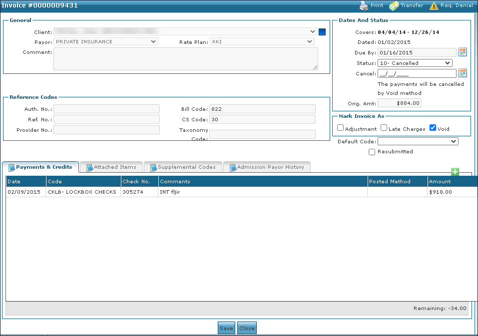 2. Change the status to '10 - Cancelled.' The Payment Adjustment box opens. 3. Select the payment adjustment type or click the Void radial. |