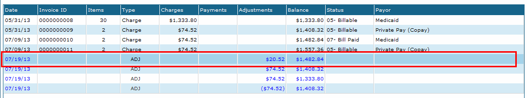 3. Double click on the payment or adjustment to be voided. |