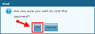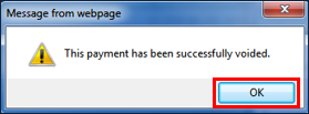 5. Click OK to void the payment. 6. Click OK on the confirmation message. |