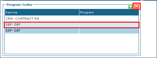 4. Click on the program code to be deleted. 5. Click Delete Program Code. |