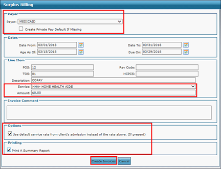 7. Enter the surplus billing information. 8. Click Create Invoice. |