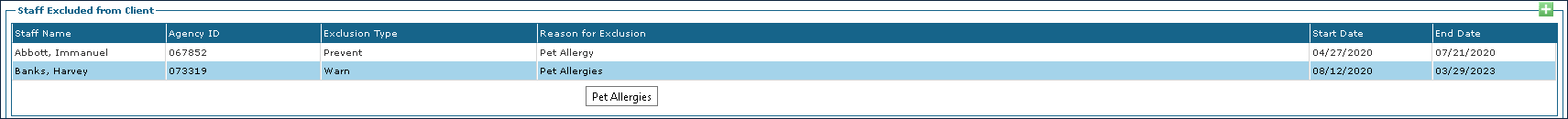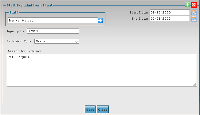 To remove a staff member exclusion from a client profile: