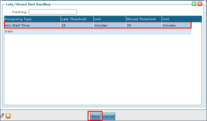 To edit a line for a Late/Missed Visit Handling processing on a Service: