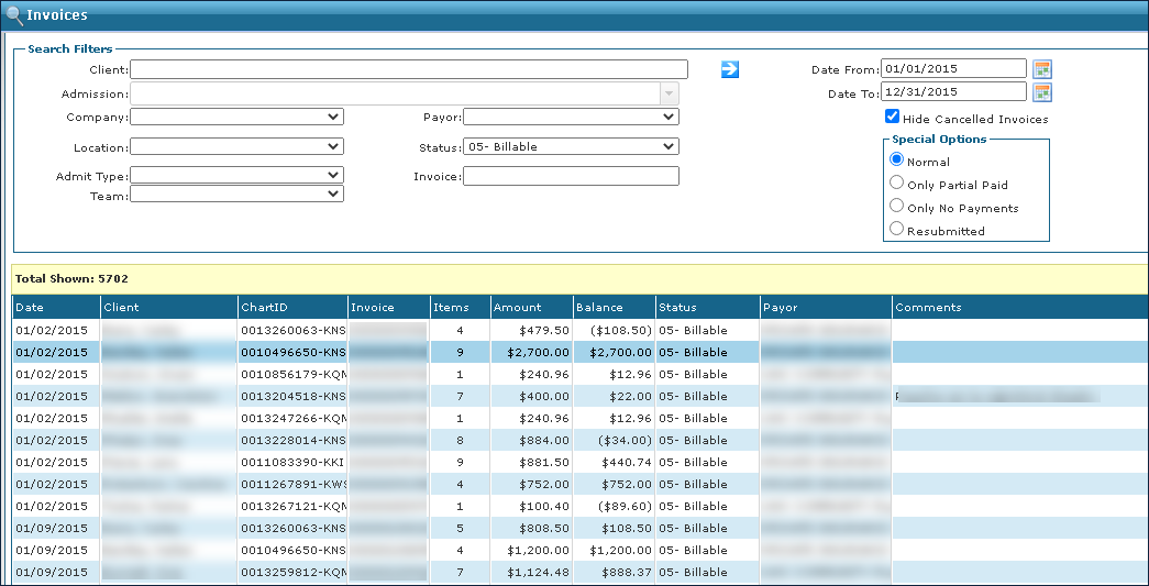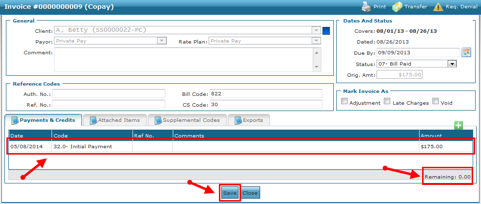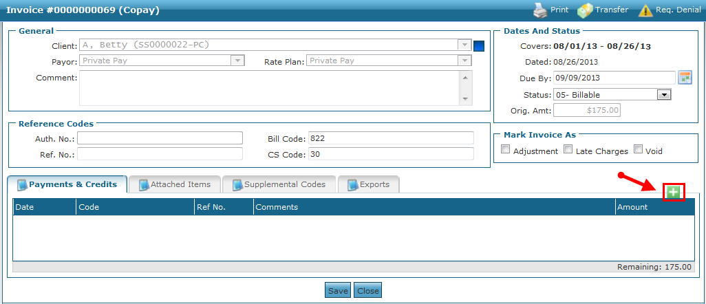 When using Manual Remittance, once payment has been received for a billed invoice, it must be added to the invoice and distributed to the appropriate visits.