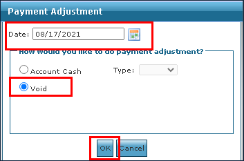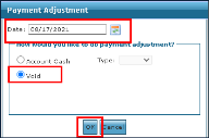 4. Enter the date for the payment to be voided. 5. Click Void. 6. Click Ok. |