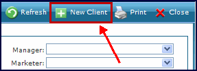 1. Navigate to the Client Search screen. Main Menu > Client 2. Click the New Client button. This opens the New Client wizard. |