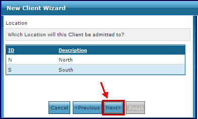 8. Select the name of the Location that is associated with this client and click Next. |