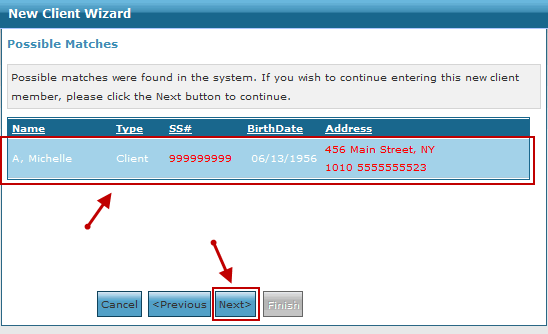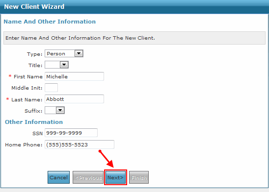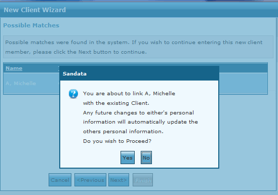 If you do not want to link the client, click on Next without selecting the client. If you inadvertently selected a client and do not want to link, click Previous then Next twice.