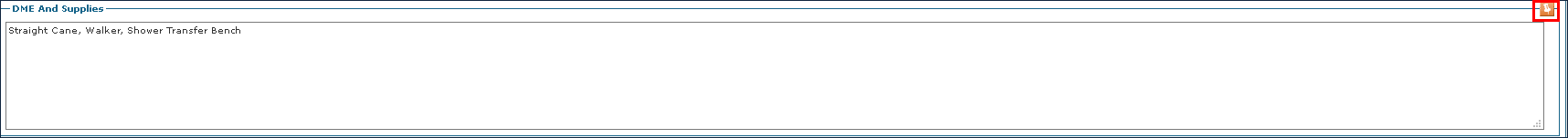 Equipment can be added to the Client Profile by clicking into the box and adding text or by using a preexisting template. To add equipment to a client’s admission: