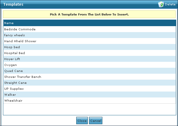 4. Click Insert a Template. To add new equipment, click Add Text As New Template and enter the equipment name. |