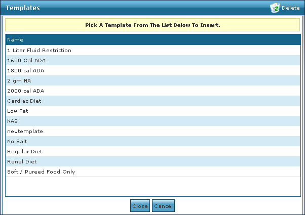 4. Click Insert a Template. To add a new requirement, click Add Text As New Template and enter the name of the nutritional requirement. |