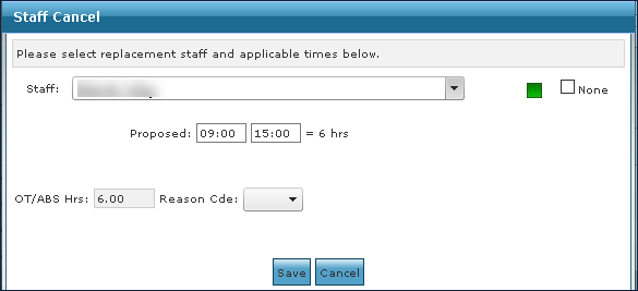In a situation where a staff member cannot make a visit, a replacement can be selected. To change a scheduled staff member on the client’s admission: