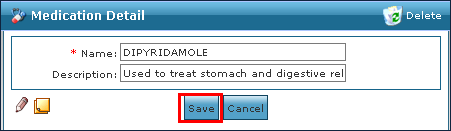 3. Double click the medication name. 4. Make any changes to the medication name or description. 5. Click Save. |