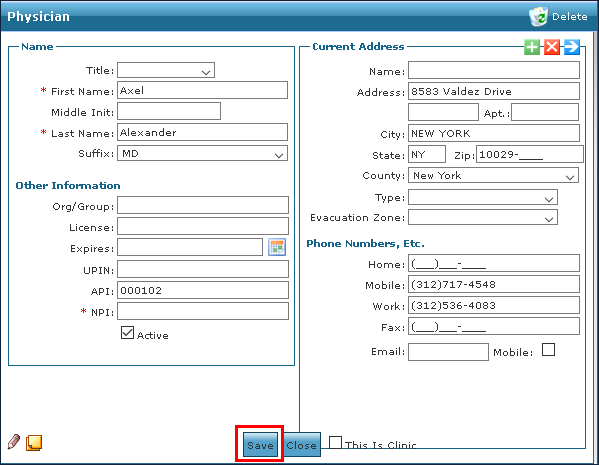 4. Make any changes to the physician’s information. 5. Click Save. |