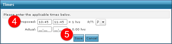 4. Enter the new changes, as necessary. Select 'P' if the change is permanent to update the permanent schedule template for all schedules generated in the 5. Click Save. Select a Reason Code if required. |
