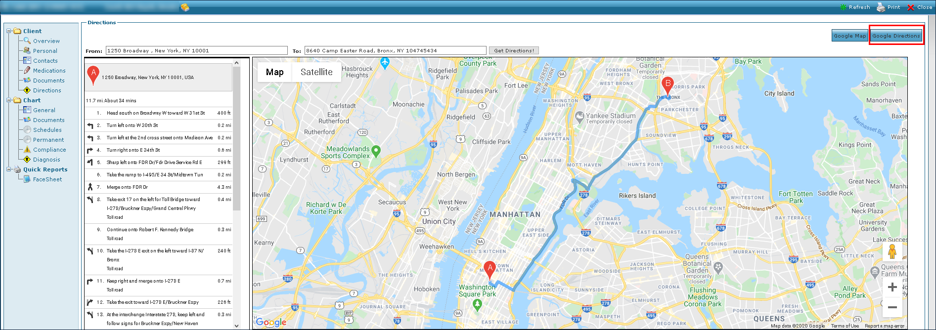 Sandata Technologies Product Help Sandata Agency Management Client Client Profile Client Profile - General Viewing Google Directions To obtain step by step directions to the client’s primary address: 1. Navigate to the Client Search screen. Main Menu > Client 2. Locate and double click on the client using the search filters. 3. Click Directions. 4. Click Google Directions. Zendesk Designer.5.log-1117815581.zip10 KB Comments 0 comments Please sign in to leave a comment.