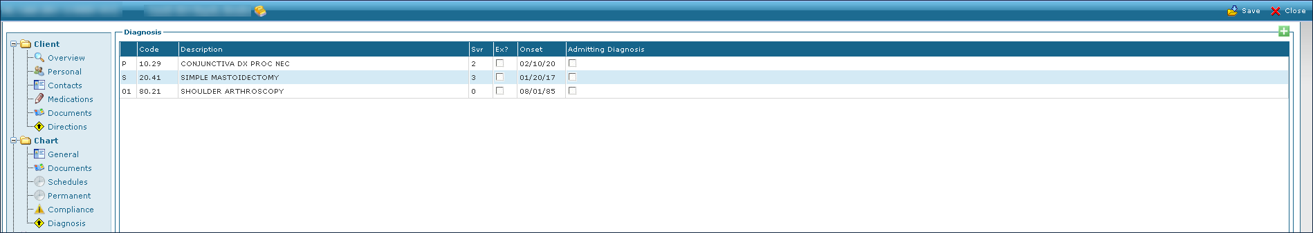 1. Navigate to the Client Search screen. Main Menu > Client 2. Locate and double click on the client using the search filters. 3. Click Diagnosis. 4. Double click on the diagnosis to be viewed. |