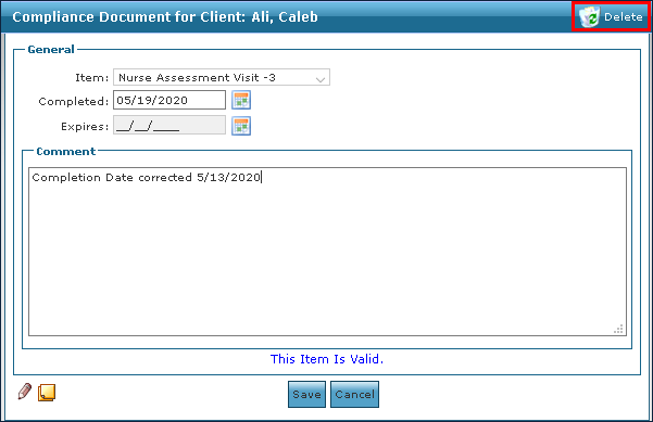 To remove an invalid or incorrect compliance document from a client’s profile: