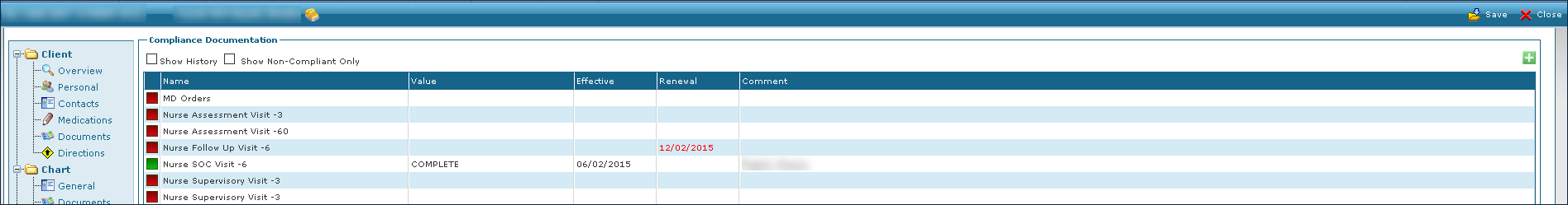 1. Navigate to the Client Search screen. Main Menu > Client 2. Locate and double click on the client using the search filters. 3. Click Compliance. |