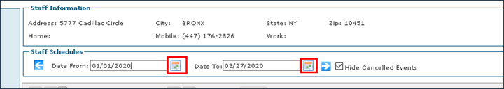 4. Use the filters to select a date range of schedules. |