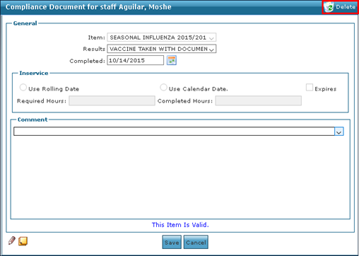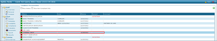 1. Navigate to the Staff screen. Main Menu > Staff. 2. Locate and double click on the staff member using the search filters. 3. Click Compliance. 4. Double click on the document to be edited. |