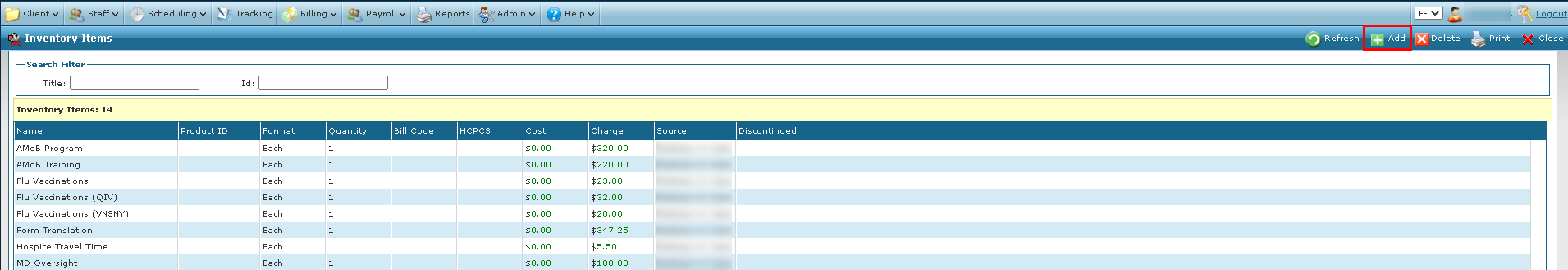 Sandata Technologies Product Help Sandata Agency Management Scheduling Scheduling Module Adding an Item to the Inventory Items Screen To add a new item to the inventory: 1. Navigate to the Inventory Items screen. Main Menu > Scheduling > Inventory > Inventory Items 2. Click Add. 3. Enter the item information. 4. Click Save. Zendesk Designer.5.log-1117815581.zip10 KB Comments 0 comments Please sign in to leave a comment.