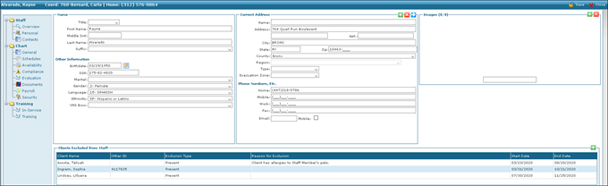 1. Navigate to the Staff Search screen Main Menu > Staff. 2. Locate and double click on the staff member using the search filters. 3. Click Personal. |
