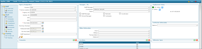 1. Navigate to the Staff Search screen. Main Menu > Staff. 2. Locate and double click on the staff member using the search filters. 3. Click General. |