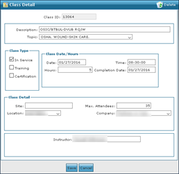 Sandata Technologies Product Help Sandata Agency Management Staff Staff Training Editing a Class To edit a class: 1. Navigate to the ClassMaster screen. Main Menu > Staff > Training > ClassMaster. 2. Locate the class. 3. Double click on the class. 4. Make changes to fields, as needed. 5. Click Save. Zendesk Designer.5.log-1117815581.zip10 KB Comments 0 comments Please sign in to leave a comment.