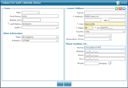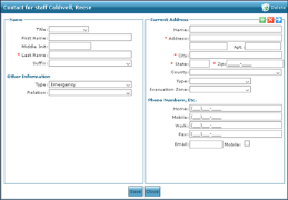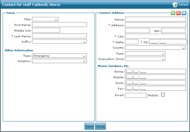 5. Use the fields to enter the contact information. 6. Click Save. The contact is added to the staff member’s profile. |