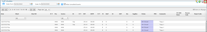 1. Navigate to the Staff Search screen. Main Menu > Staff. 2. Locate and double click on the staff member using the search filters. 3. Click Schedules. |