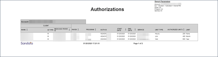 This report allows users to view all authorizations over the selected date range. This report displays any authorizations in effect on any day that falls within the selected date range. The report helps monitor overall authorization information.