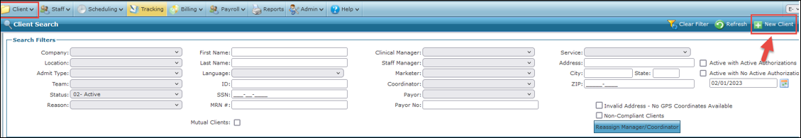 At minimum, the client’s first and last name must be entered and are noted with an asterisk (*)