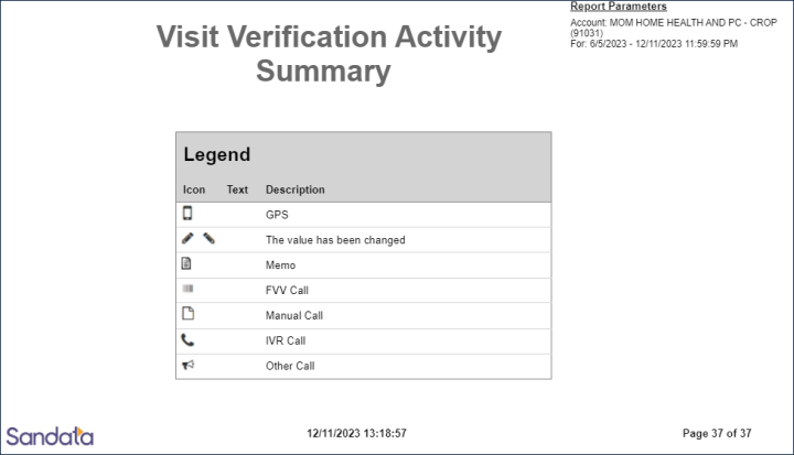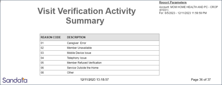 This report contains a list of modifications for each visit, if any. Only the modified visits are included in this report and lists the user who performed the Visit Maintenance.