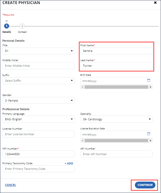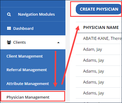 Physicians can be added to the system in the Physician Management module to build a list of local medical practitioners, doctors or specialists.