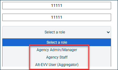 Important! Agency Admins, Managers, and Independent Providers should select the first option, Agency Admin/Manager.